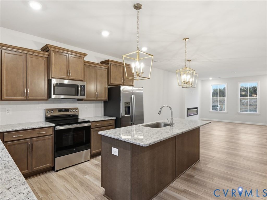 *MOVE IN READY*Welcome to the Corabell two-story townhome with three bedrooms, two-and-one-half baths, and 1,461 square feet. This elevated and luxurious home is designed with grey and airy features and warm accents. The welcoming great room and dining space flow into the kitchen at the back of the home. The kitchen is designed with warm burlap cabinets, a white glossy backsplash, lighthouse flooring, and all-new GE stainless steel appliances, including an electric range, a microwave, a dishwasher, and a refrigerator. Additional features on this floor include a nook with a walk-in pantry, a powder room, a coat closet, and a pet pad! Upstairs, there are two good-sized bedrooms, a full hall bath, a GE stacked laundry area, and a linen closet. Down the hall is a private primary suite with a spacious walk-in closet and full bath with a double vanity, burlap cabinets, and soft ceramic tile. * Photos are of actual home* *First-time homebuyer grants available*